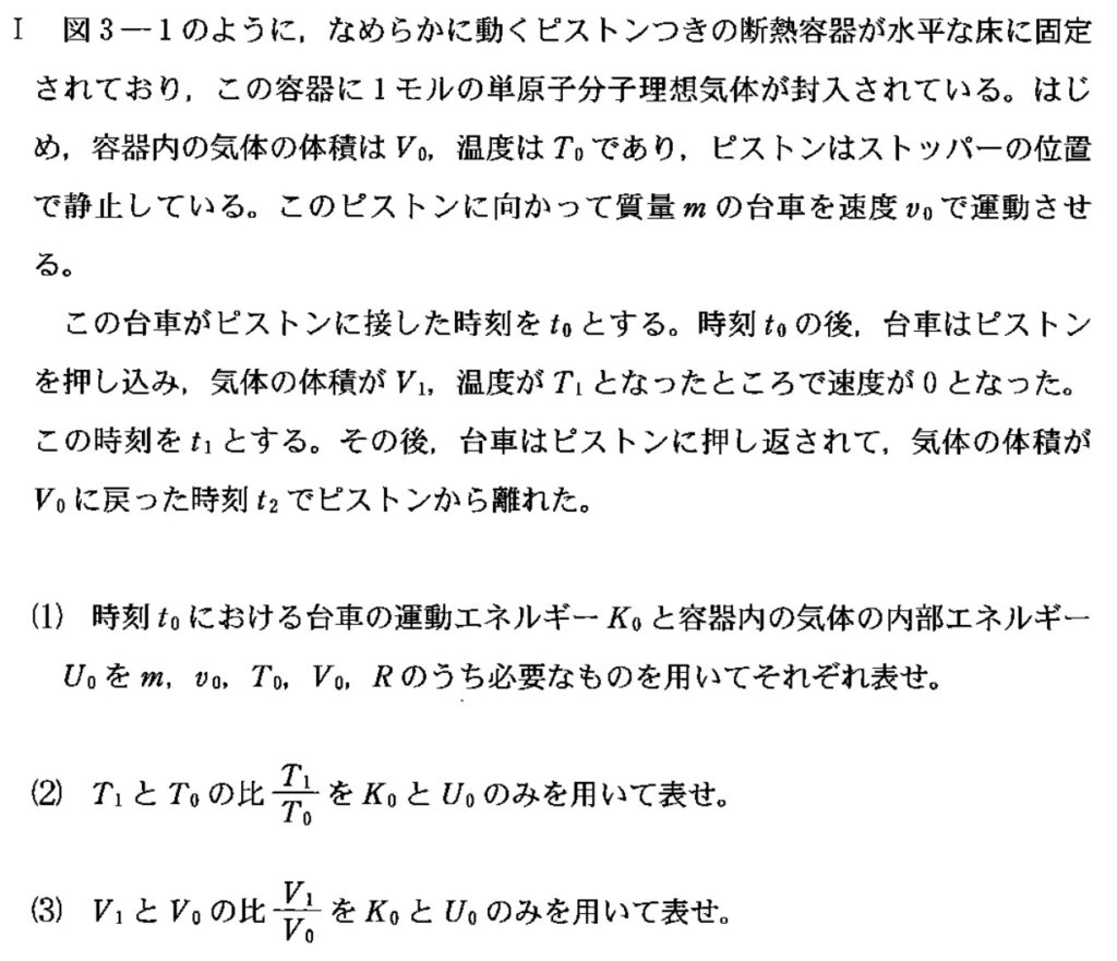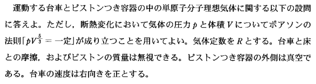 今回は、エネルギー保存則と、熱力学を合わせた問題。